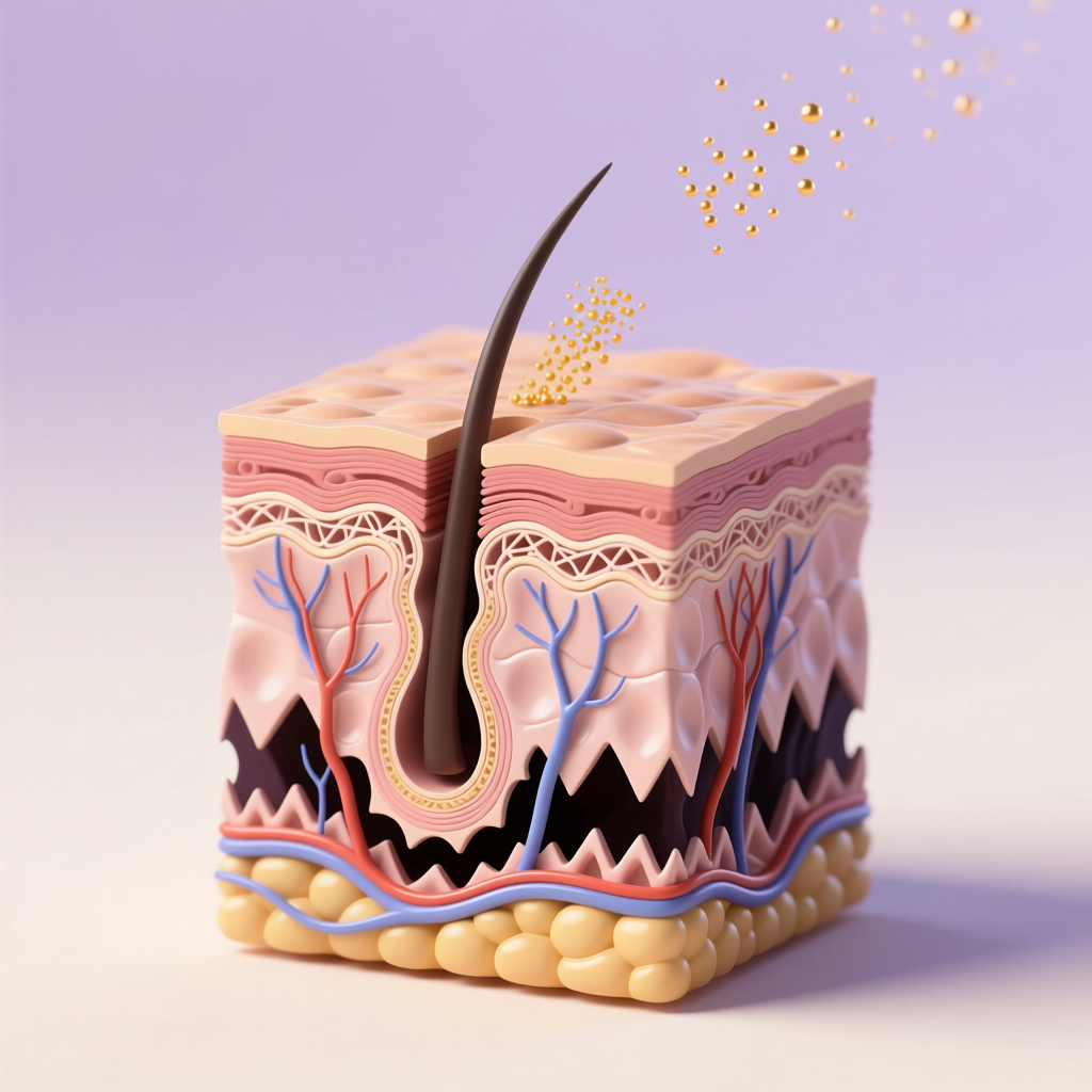 После 40–45 лет женский организм переживает значительные гормональные изменения, связанные с началом перименопаузы — переходного периода к менопаузе. Именно в это время уровень эстрогена, ключевого гормона для здоровья кожи, начинает неуклонно снижаться. Это не просто «возрастные изменения» — это биохимический сдвиг, напрямую влияющий на структуру, функции и внешний вид кожи. **Как эстроген влияет на кожу?** Эстроген играет центральную роль в поддержании увлажнённости, эластичности и плотности кожи. Он стимулирует выработку гиалуроновой кислоты, коллагена и эластина, укрепляет кожный барьер и улучшает микроциркуляцию. Когда его уровень падает, кожа теряет до 30% коллагена в первые пять лет менопаузы, а выработка гиалуроновой кислоты сокращается почти вдвое. Результат — сухость, истончение кожи, появление глубоких морщин, тусклый цвет лица и повышенная чувствительность. Кроме того, снижение эстрогена нарушает липидный баланс: кожа хуже удерживает влагу, становится более уязвимой к раздр