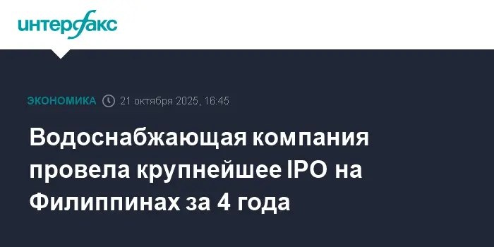Филиппинская водопроводная компания Maynilad разогнала рекордное IPO, собрав почти 600 миллионов долларов! Акции улетели мигом, по верхней цене, а половину расхватали крупные ребята вроде Азиатского банка развития. Так Филиппины удивляют рынок капитала, делая крупнейшее IPO за 4 года!