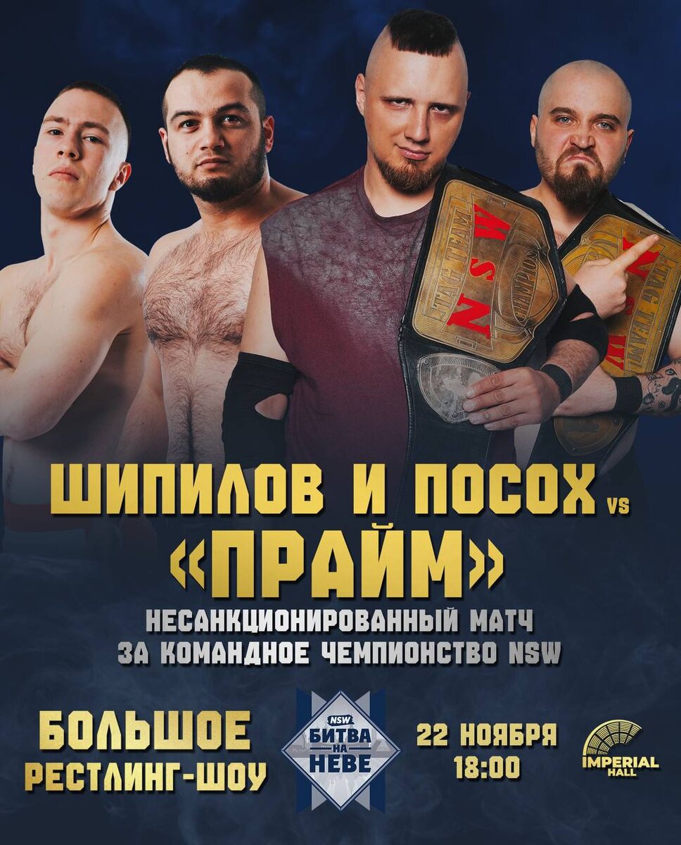 ⚡️НЕСАНКЦИОНИРОВАННЫЙ МАТЧ НА "БИТВЕ НА НЕВЕ" 🔆 БИЛЕТЫ НА ШОУ: https://nsw.qtickets.ru Победители командного турнира "Прайм" встретятся с командными чемпионами Сергеем Шипиловым и Владимиром Посохом в первом за всю историю NSW НЕСАНКЦИОНИРОВАННОМ матче! Несанкционированный матч за командное чемпионство NSW: Сергей Шипилов и Владимир Посох против "ПРАЙМ" (Руслан "Акела Ангелов и Михаил Князев) ————————————————— NSW БИТВА НА НЕВЕ 2025 Дата: 22 ноября 2025 г. Место: Imperial Hall Двери: 17:00 Время начала шоу: 18:00