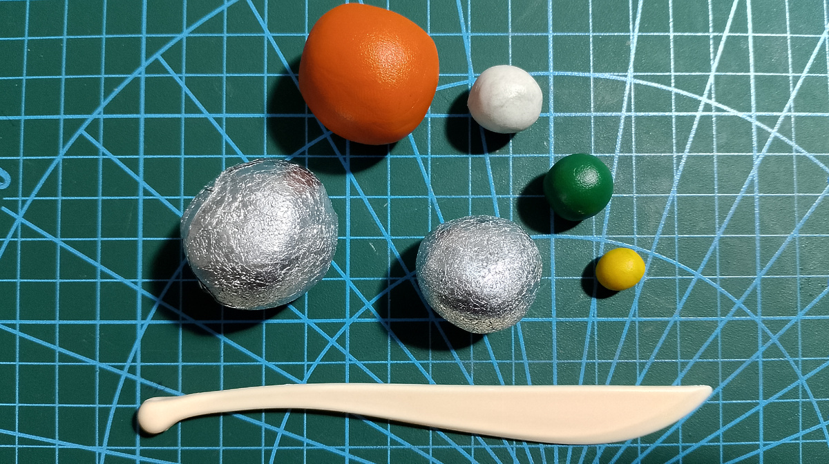 Здравствуйте гости канала и подписчики! Сегодня мы сделаем тыкву из пластилина или пластики. Если вы хотите, чтобы ею можно играть или планируете применять не раз, то лучше сделать из пластики и запечь. Для тыквы понадобятся два необходимых цвета пластики/пластилина, коврик для лепки или полиэтилен, полиэтилен для тыквы и стек. У меня не было подходящих оттенков, поэтому для тыквы взяла ярко оранжевый и белый, а для хвостика и усиков темно зеленый и желтый. Также чтобы меньше ушло пластики скатала из фольги шарик. Два шарика - так как будет две тыквы. Смешиваем сначала оранжевый и белый, если требуется. Чтобы изменить цвет до желаемого мне понадобилось в три раза больше белого цвета, чем планировалось. Разделим получившийся шар на две части (если вы также планируете сделать две тыквы, иначе ничего делить не надо. Так как одна тыква будет крупнее, а вторая меньше, то части разные. Для следующего шага необходимо чем-нибудь застелить поверхность (полиэтиленом, ковриком для лепки). Если вы