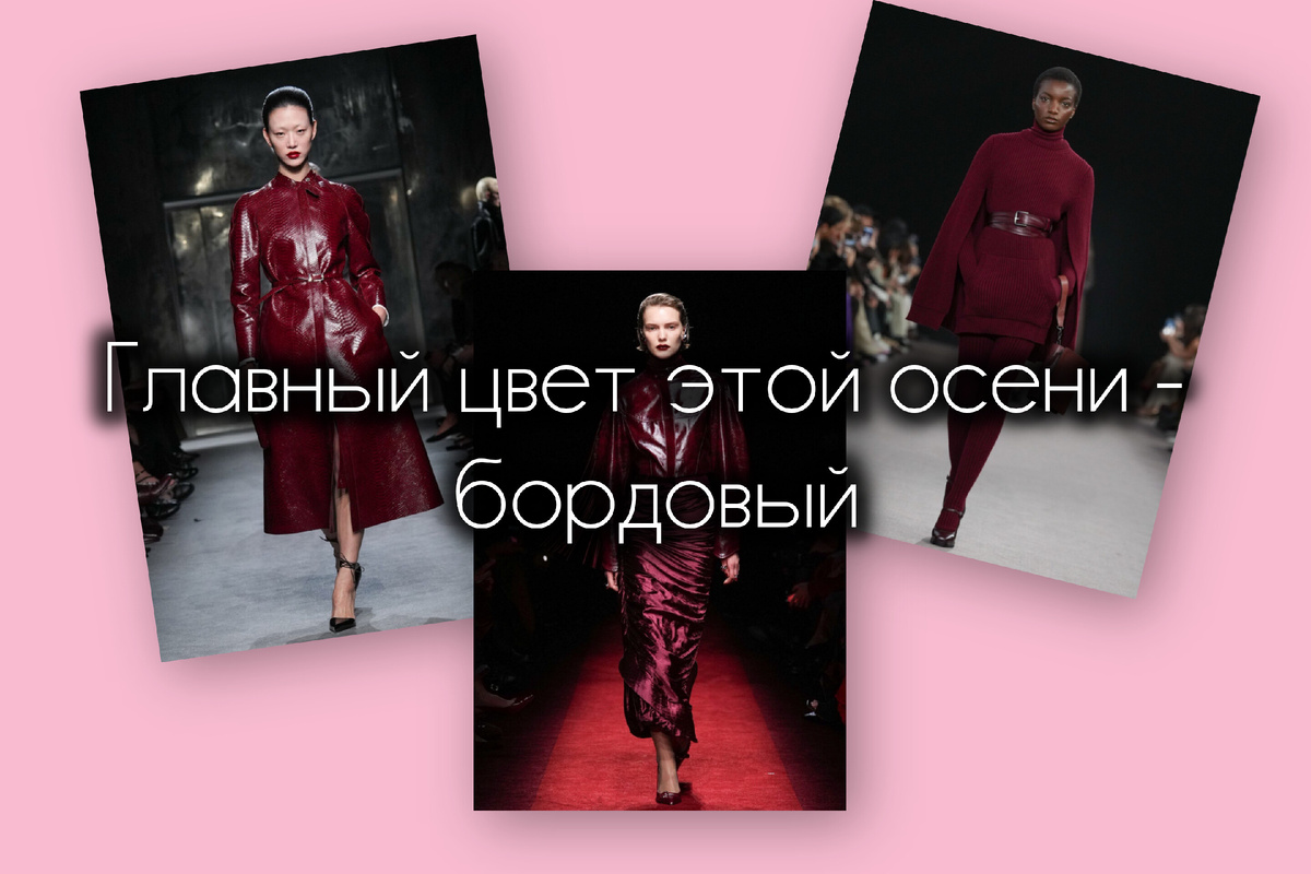 Друзья, всех приветствую на моем канале! В прошлом сезоне бордовый цвет в разных оттенках был невероятно популярен, поэтому многие были уверены, что он всем надоест и покинет список трендов. Но, этого не произошло, а всевозможные винные оттенки, оттенки бургунди, бордовый, цвет спелой черешни остались в моде. Сегодня посмотрим, как дизайнеры предлагают нам включать эти цвета в свой гардероб. Начнем с верхней одежды, что, учитывая погоду, сейчас особенно актуально. Тут дизайнеры представили нам разные, но очень интересные и достойные внимания варианты. Бренд Mame Kurogouchi показал на подиуме шикарное длинное пальто. Такое можно стилизовать по-разному, соединяя его с повседневной одеждой, например, кроссовками, джинсами и уютным свитером с высоким горлом или же с чем-то более парадно-выходным (коктейльное платье и изящные сапоги). У бренда Tom Ford мы увидели сногсшибательное кожаное пальто с тиснением. В таком вы точно не останетесь незамеченной. Для усиления эффекта к нему можно добав