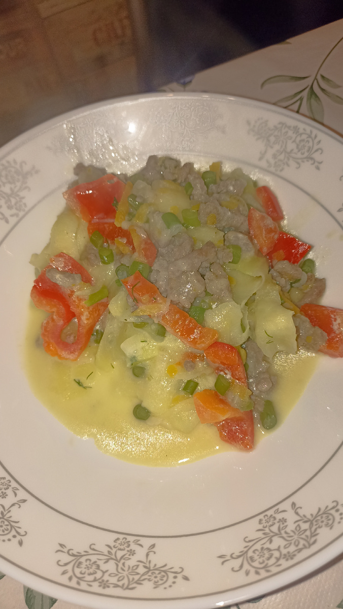 Доброго времени суток! Вот уже и середина недели. Ещё немного и у меня мини отпуск. С 28 октября на 5 дней. Не сказать, что я сильно прям уж притомилась, но небольшая усталость чувствуется. Мне кажется, что это больше от бытовых забот. Вспоминаю, как работала, когда младшего сына ещё у нас не было, а старший с мужем были у бабушки на даче. Вообще на лайте! Дома разок прибралась и бардак больше не наводишь. С работы приехала, поела и читать. Были же времена... Сейчас у нас много чего происходит. Обо всем здесь рассказывать не хочу и не буду. Очередная партия моих нервных клеток практически ежедневно делает мне ручкой 👋 Нормально не сплю и морально вымотана, но всё ещё верю в хорошее. Готовила очередную бурду. Съели сразу, хотя выбор был. Кабачки, перец, чесночные стрелки и фарш. В сметане. Муж сегодня с сыном дома на уборке. Вчера ездили по работе. Вечером с младшим на футбол. Я утром была без врача. Пришлось побегать, но вроде всё успела. Хочу спать и больше ничего. Эти выходные про