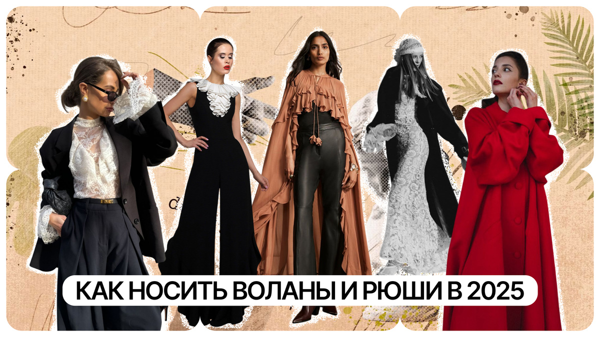Начни с верха с рюшами – пусть он будет воздушным и немного романтичным. Балансируй образ простыми брюками или джинсами нейтрального оттенка. Так главный акцент останется на деталях – воланах, складках, фактуре ткани.