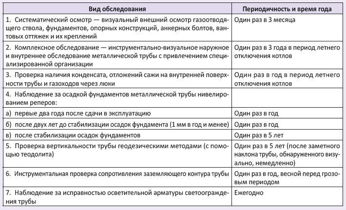 📌Металлические дымовые трубы: периодичность обследований Для металлических дымовых труб проводятся периодические обследования для наблюдения за их состоянием (табл. 1 РД 153-34.0-21.524-98).