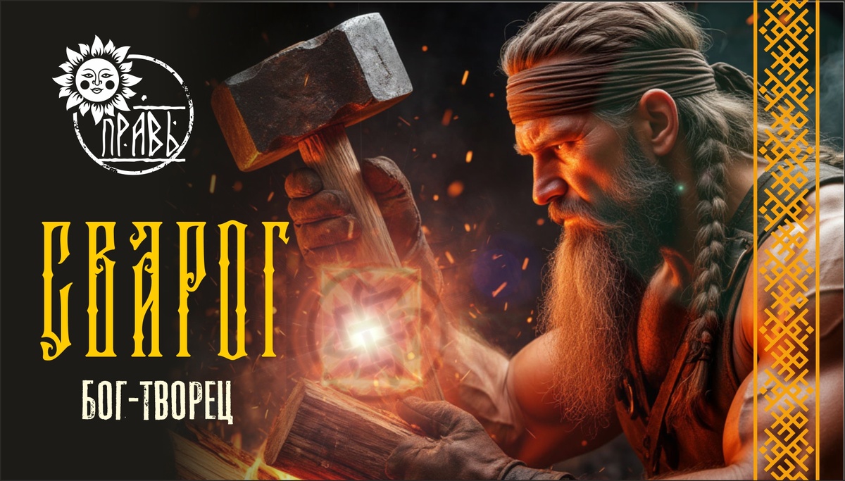 В небесной кузнице, где звёзды рождаются из раскалённого металла, а молот о шестнадцати лезвиях выковывает саму реальность, трудится он - Сварог. Первый из богов, рождённых Родом, бог-творец, небесный кузнец и великий законодатель. Если Перун это яростная сила, то Сварог это разумное творческое начало, преобразующее хаос в упорядоченный космос. Учёные видят в нях одного из древнейших и наиболее почитаемых богов славянского пантеона, олицетворяющего не только ремесло, но и сам принцип мироустройства. Согласно реконструкции мифов, Сварог был первым воплощением творческой воли Рода. Его имя происходит от корня "свар", означающего «небо», «свет», «огонь». Он тот, кто сварганил (создал) видимый мир, придав ему форму и законы. После акта творения Род передал Сварогу непосредственную власть над миром. Сварог стал править, сидя на золотом троне в небесном Ирии, наблюдая за всем, что происходит в мире людей. Сварога представляли как зрелого, могучего мужчину с признаками мудрости и опыта: 🌞