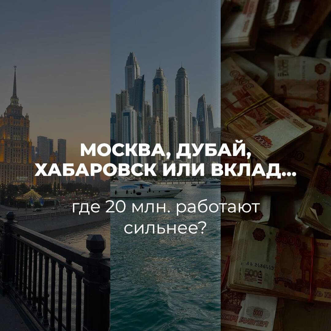 💸 Москва, Хабаровск, Дубай или вклад — где 20 млн работают сильнее?