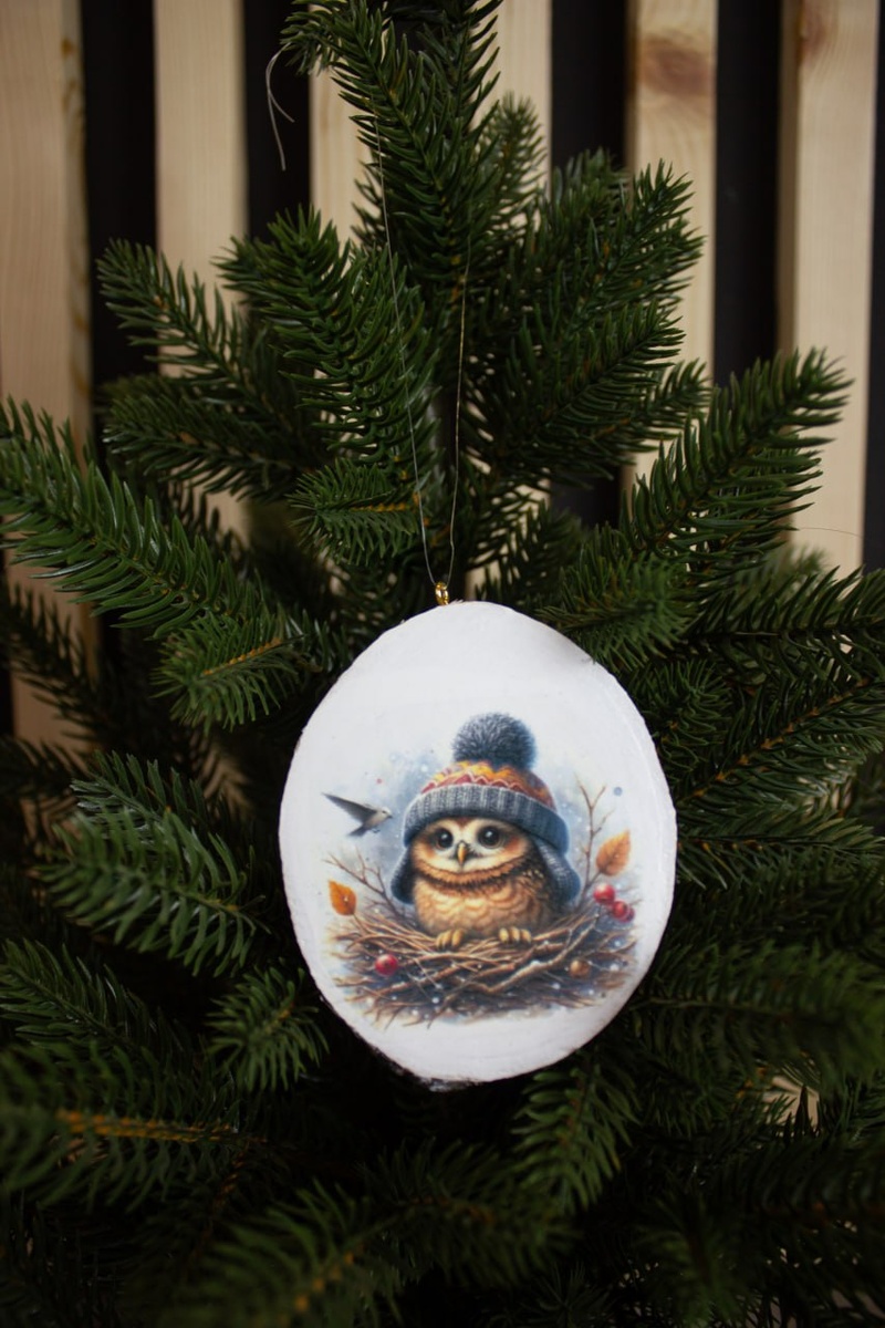 Ёлочные игрушки на спилах.