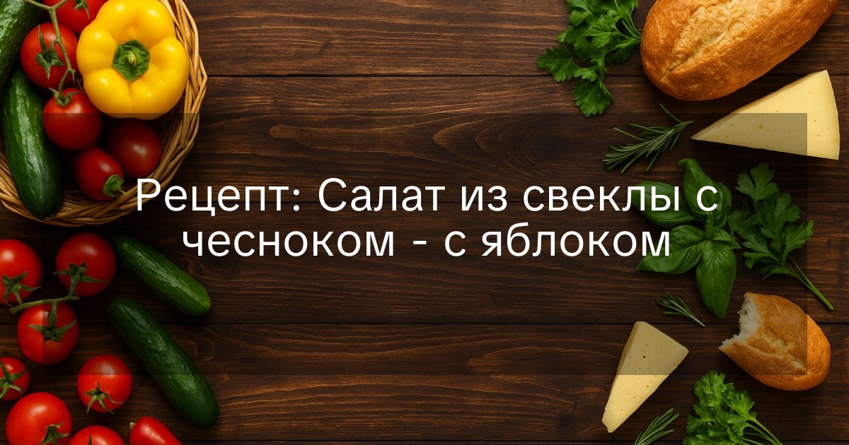 майонез — по вкусу Способ приготовления: Приветствую всех! Этот салатик я люблю с детства. Он прост в приготовлении и содержит много витаминов. К нему я обычно отвариваю картошку. Время на отвар свеклы я не учитываю, так на его приготовление уходит минут 15. Быстро и вкусно, и нужно минимум ингредиентов. Для начала запарьте изюм в горячей воде. Затем подготовьте свеклу: возьмите 4 штуки и натрите на крупной терке. Далее почистите яблоко и тоже натрите его на крупной терке. Теперь добавьте изюм. После этого очистите чеснок и выдавите его. У меня нет чеснокодавилки, поэтому я просто натираю чеснок на мелкой терке. Приготовление подходит к завершению. Осталось немного посолить салат и добавить примерно две столовые ложки майонеза. Все ингредиенты тщательно перемешайте. Салат готов. Приятного аппетита! Время приготовления: 15 мин.