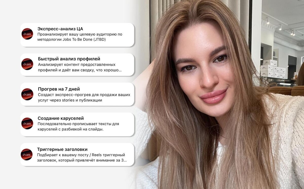 Я собрала 5 GPT-ассистентов, которые на 7 дней вперёд помогут выстроить системный прогрев. Так, чтобы контент не просто рассказывал о вас, а мягко вёл к вашим услугам, закрывая боли аудитории.