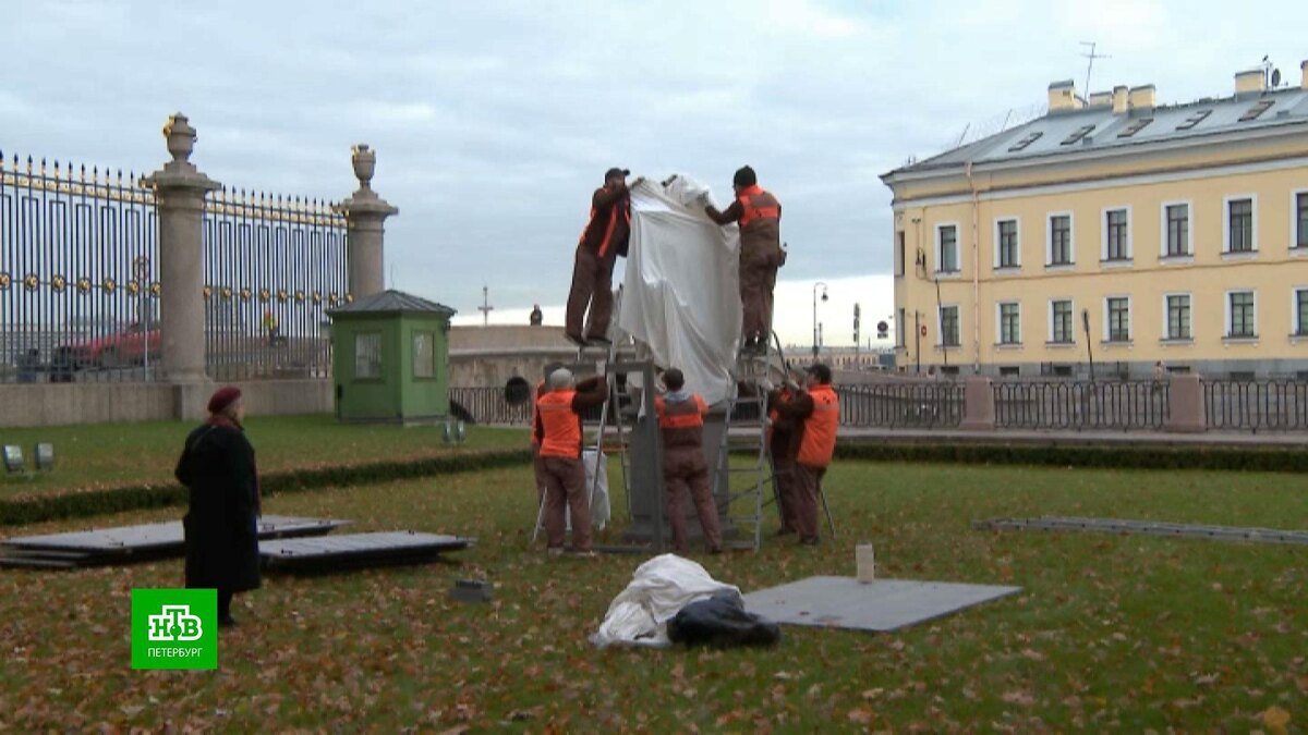 [ Смотреть видео на сайте НТВ ] Летний сад активно готовится к зиме. Сегодня сотрудники Русского музея начали укрывать скульптуры. Это традиционное действие проводится каждый октябрь на протяжении нескольких веков и направлено на то, чтобы мрамор не разрушался в наиболее холодный и влажный период. Первой укрыли скульптурную группу «Мир и Победа», посвященную окончанию Северной войны. Это единственные оригинальные фигуры XVIII века авторства Пьеттро Баратта, которые до сих пор хранятся в Летнем саду под открытым небом. Остальные давно перенесены в Михайловский замок, а на их месте установлены копии из полимерного мрамора. Тем не менее, технология укрытия для всех едина. Сначала композицию оборачивают хлопковой тканью, после чего помещают в деревянный футляр. Алексей Баруздин, заведующий отделом реставрации каменной гипсовой скульптуры Летнего сада: «Главным образом, нужно избежать воды на мраморе. Это самое главное. И нельзя закрывать ни в коем случае полиэтиленом, создавать парниковый