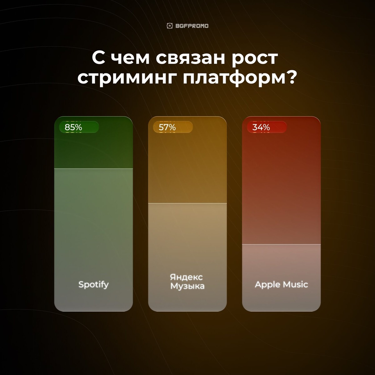 2024 год стал рекордным для российского рынка музыкальных сервисов. Объём рынка достиг 38 млрд рублей, что почти на 50% больше, чем в 2023 году. Эксперты ожидали рост до 32 млрд, но реальные темпы превзошли прогнозы, показывая высокую активность пользователей и спрос на локальные сервисы. За последние два года число слушателей увеличилось примерно на 20%, а количество платных подписчиков выросло более чем на 50%. Сегодня по разным оценкам в России от 75 до 84 миллионов пользователей музыкальных сервисов. Это делает рынок крайне привлекательным для артистов, лейблов и агентств, работающих с продвижением музыки. После того как иностранные платформы сократили присутствие в России, рынок перераспределился: Такая перестройка рынка создает новые возможности для локальных артистов и агентств. Развитие экосистем и рекомендательных алгоритмов стало одним из драйверов роста: Это повышает вовлечённость аудитории и формирует лояльность к локальным платформам. Для артистов это значит: попадание в р