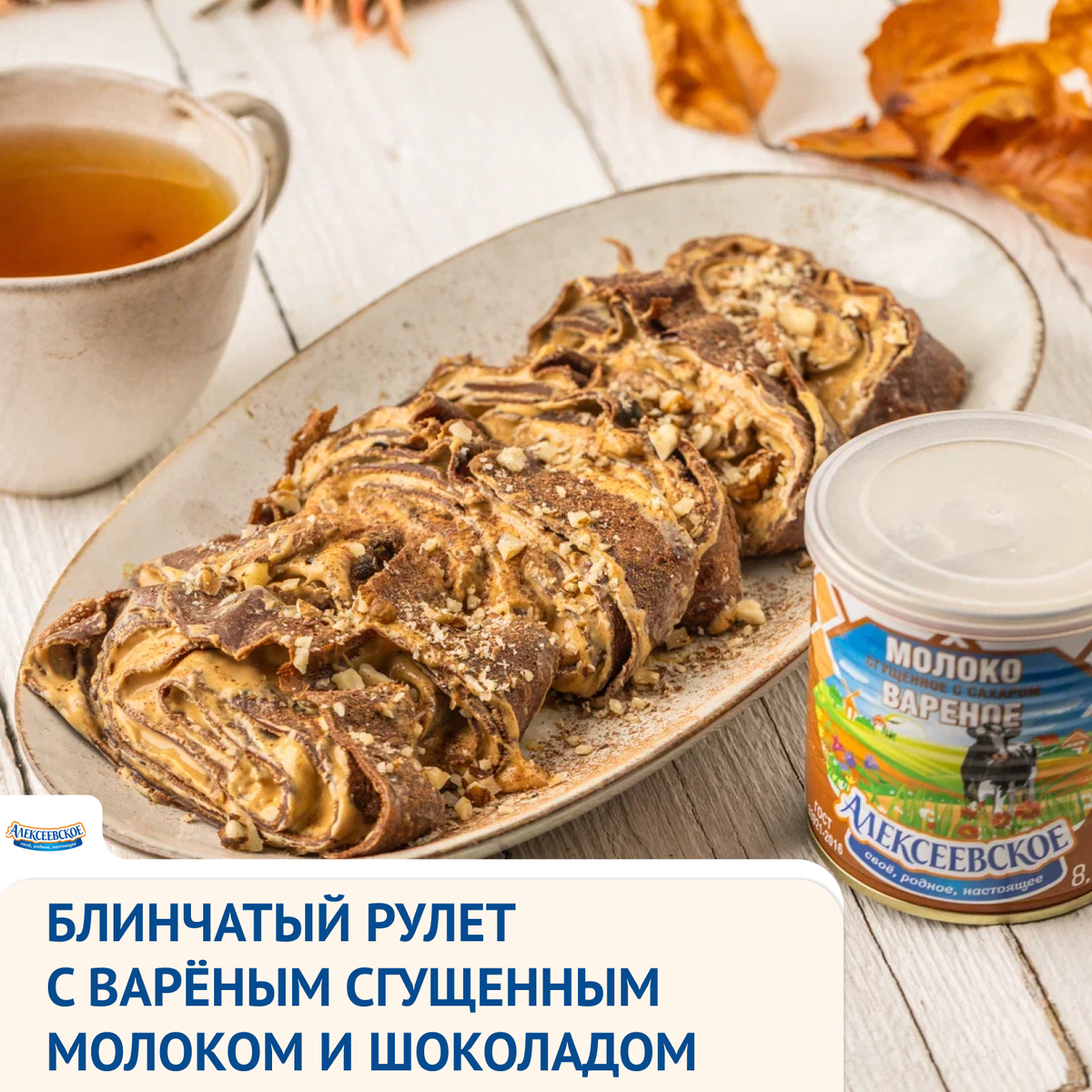 Осень — это время для уюта, сладостей и тёплых вечеров в кругу близких. А лучший способ создать это настроение — приготовить блинный шоколадный рулет с нежным кремом из варёного сгущённого молока «Алексеевское».