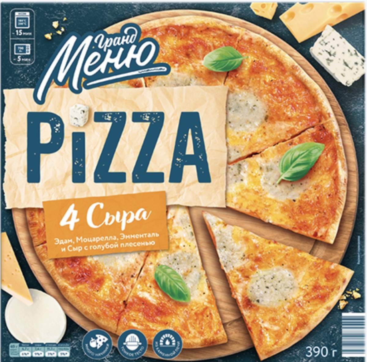 Кто не любит пиццу? Обожаю пиццу! Но качество предлагаемых изделий оставляет желать лучшего. И, чаще всего, это не пицца, а открытый пирог с начинкой в итальянском стиле. Не плохо смотрится после 15 минут в духовке про 180 гр., хоть и бледновата. Настоящая пицца готовиться в печи буквально 5-7 минут при температуре 400-500 гр. Дома у нас такой возможности нет, и мы печем пироги типа пицца, либо покупаем полуфабрикат, предварительно запеченный по правилам пиццы. Мы его только доготавливаем. Или заказываем готовую пиццу. Как она была сделана - не понятно. После посещения Италии, я поняла - наши российские пиццы просто ужасные Но надежда умирает последней - будем искать. Состав - тут целая простыня - попробуй прочитай, не привожу его полностью. Можно все почитать на коробке. В томатном соусе слишком много сахара, нет вкуса помидоров и остроты, и есть привкус горохового пюре или чего-то подобного. Вообщем за 169 рублей - терпимо. И коробка на 2 см с каждой стороны больше, чем пицца - та