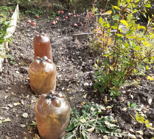 На фото - черенкованные дерены и пузыреплодники под такими бутылками, черенковала сразу под большие емкости, потому что эти саженцы разрастаются быстро. Так они и ушли в зиму, а весной готовы были к высадке.