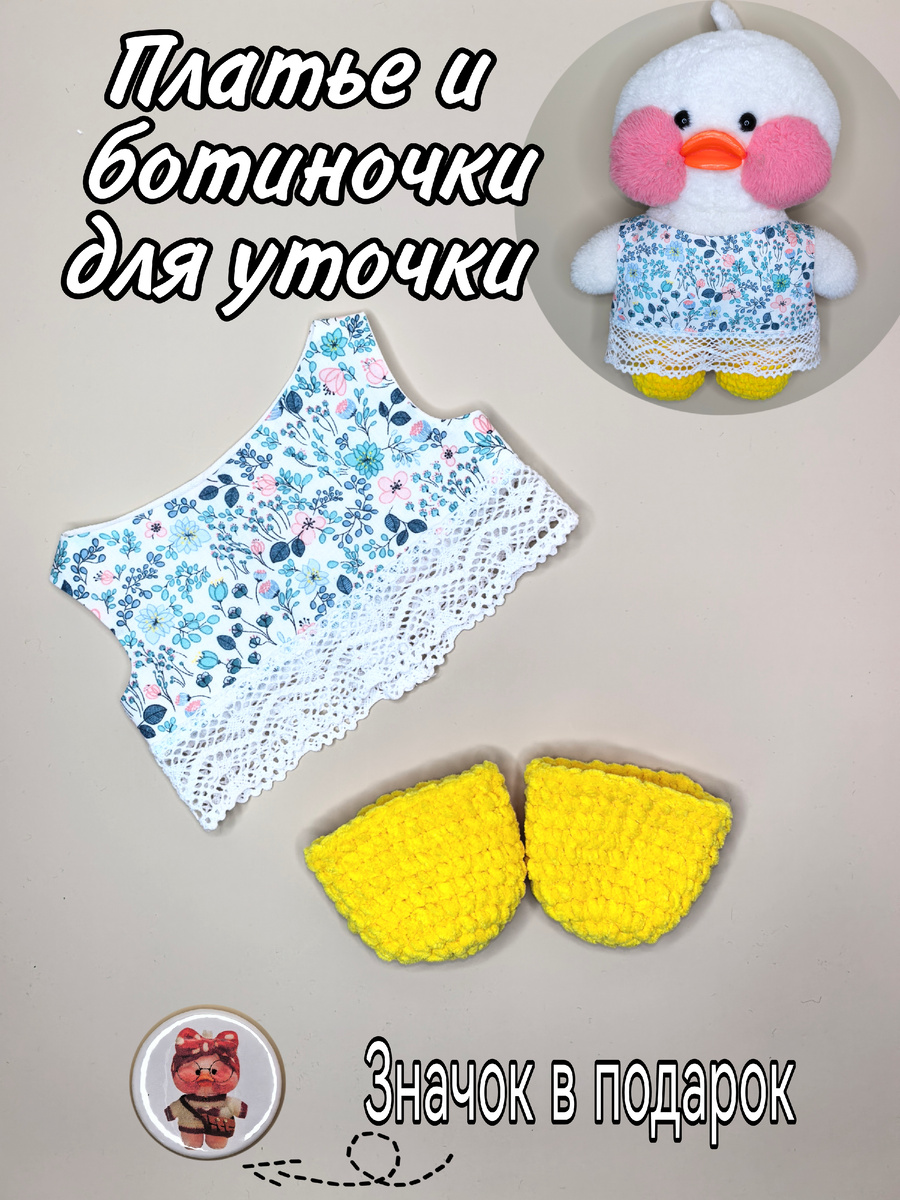 Очаровательное платье для Уточки Lalafanfan из натурального хлопка и эксклюзивные плюшевые ботиночки ручной работы.