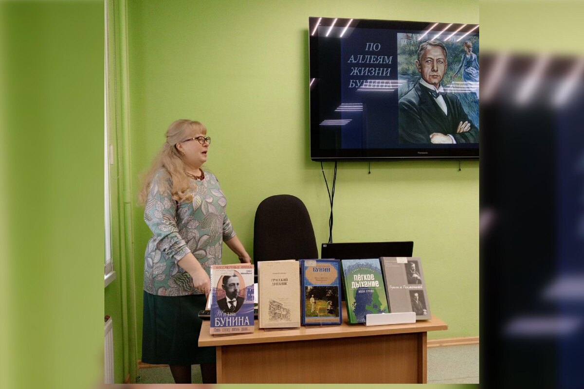 Библиотека №7 Приморского района пригласила гостей обсудить произведения Ивана Бунина и узнать подробности его биографии. В рамках мероприятия состоялась беседа «По аллеям жизни Бунина», которую подготовила и провела сотрудник учреждения Людмила Вдовина.