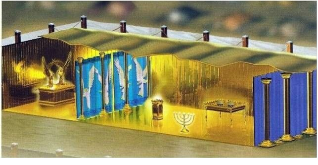 Внутренняя завеса, которая отделяла святое место от Святого-святых, была выткана из ярко окрашенных шерсти и виссона (крученого льна), как и 10 покрывал, наброшенных на скинию. Но дополнительно были украшены вышитыми херувимами. Внутренняя завеса крепилась золотымх крючками к четырем столбам, обложенным золотом и опиравшимся на серебряные подножиях. Эта завеса разделяла Скинию на две половины. В Святом-святых, помещались Ковчег и его крышка, на которой были фигуры херувимов. (Исх 25:10-22). 33. и повесь завесу на крючках и внеси туда за завесу ковчег откровения; и будет завеса отделять вам святилище от Святого Святых. 34. И положи крышку на ковчег откровения во Святом Святых.( Исход 26:33-34) Во внешней части, в святилище, находились стол с хлебами предложения и светильник (Исх 25:23-39). Кроме того, в святилище стоял, хотя впервые о нем будет упомянуто лишь в Исх 30:1-10, - жертвенник для приношения курений. Апостол Павел говорит нам о значении этой завесы (Евр 9:8−9); она подраз