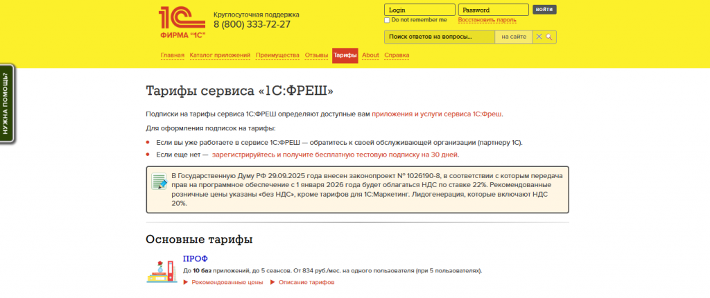 Стоимость зависит от масштабов бизнеса, количества сотрудников и выбранного решения. Например, настройка «1С: Фреш» за двух пользователей для ООО с НДС будет стоить 684 рубля в месяц. Есть и более дорогие тарифы, но на большее число сотрудников.