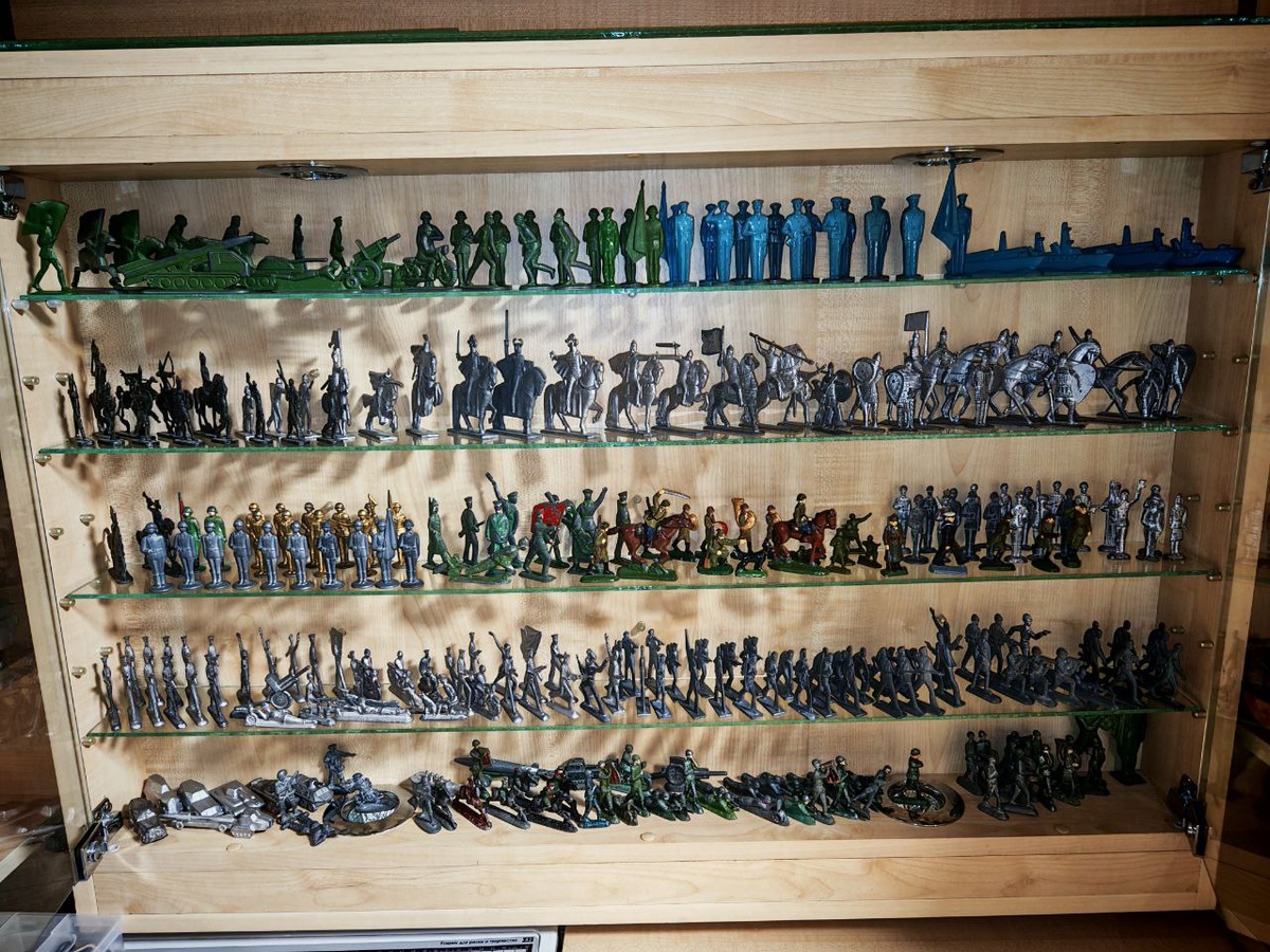 Порядок на верхней полке металлических солдатиков СССР