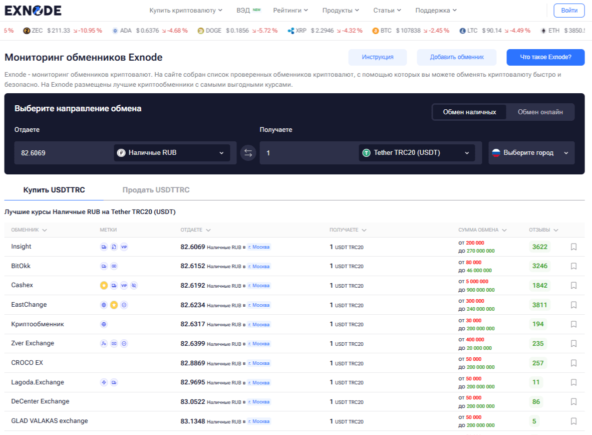 Чтобы выбрать наиболее выгодное предложение, опытные пользователи используют сервис мониторинга обменников Exnode. Он позволяет в реальном времени отслеживать, где купить USDT в Москве по наилучшему курсу и с гарантией безопасности. На нем представлены только проверенные обменники в Москва Сити, работающие с наличными и предоставляющие встречу в офисе. Это идеальное решение для тех, кто ценит скорость, анонимность и хочет выгодно конвертировать рубли в USDT прямо в сердце столицы.