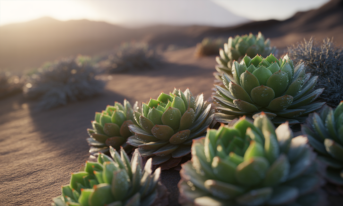 - Суккуленты: Подавляющее большинство пустынных растений. Их морфологическая особенность — наличие мясистых, водозапасающих тканей (суккулентность) — идеально сочетается с биохимией CAM-фотосинтеза.