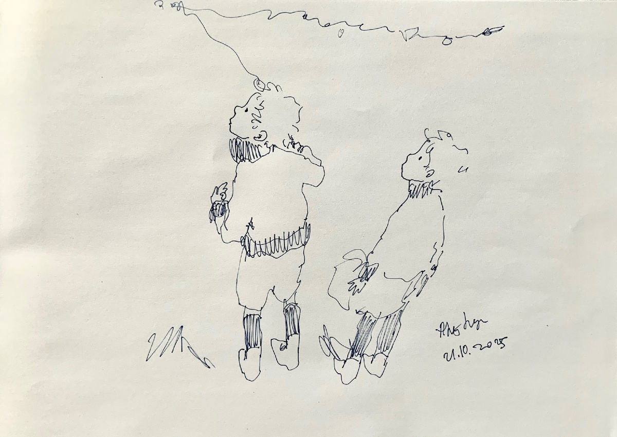 Дети наблюдают за воздушным змеем 🪁 🌾 🧒🏼 👧🏼 ⛅️