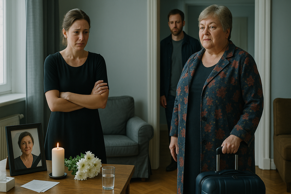 И тут в прихожей раздался звук открываемой двери. Ирина обернулась, ожидая увидеть кого-то из опоздавших. В дверном проеме появилась Тамара Ивановна. Свекровь была одета в темный костюм, волосы аккуратно уложены. Но в руках женщина держала не пакет с едой или цветами, как принято, а большой чемодан на колесиках.