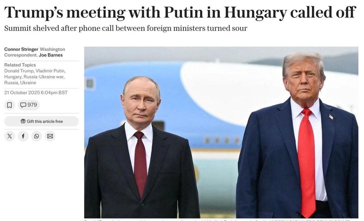 🇺🇸🇷🇺 Встреча Дональда Трампа и Владимира Путина в Венгрии отменена (The Telegraph