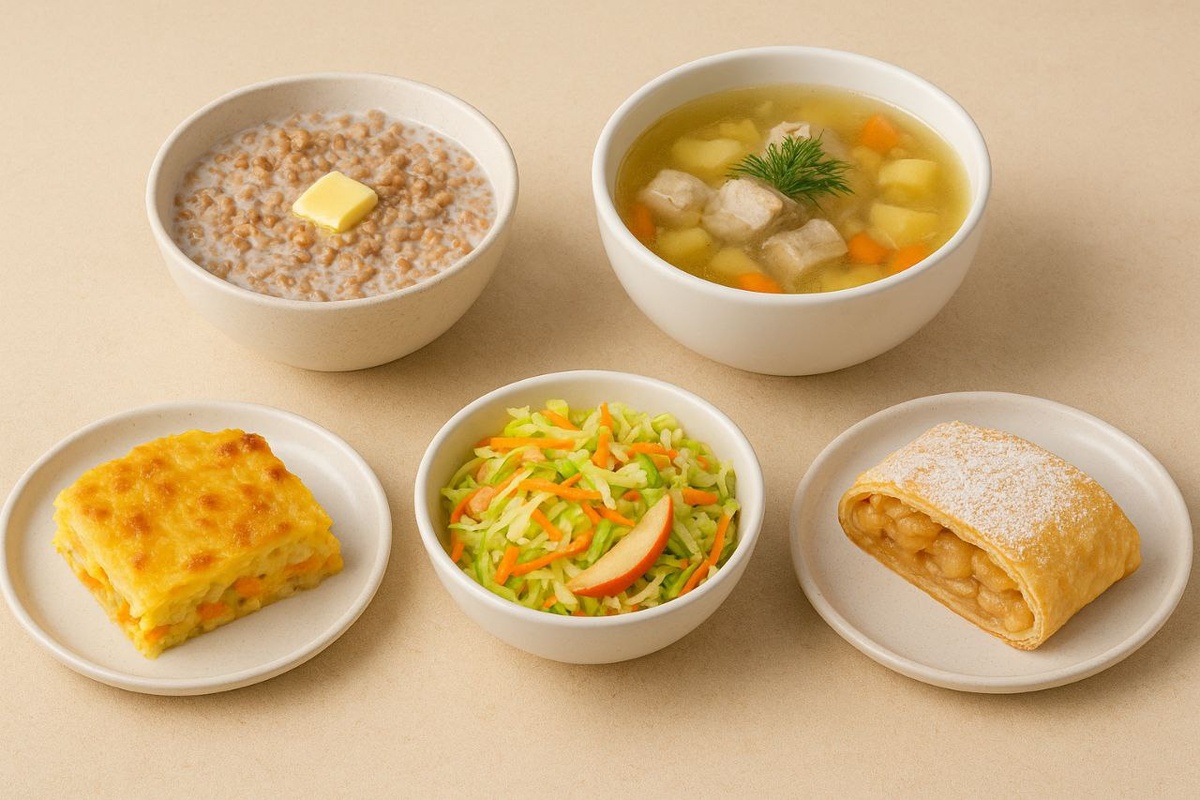 🍴 Меню на сегодня — уют и вкус в каждом блюде 🍴 Сегодняшний день наполнен домашним теплом и ароматами: 🥣 Завтрак — гречка с молоком и сливочным маслом. 🐟 Обед — уха, наваристая и прозрачная. 🥔 Ужин — картофельная запеканка с овощами, нежная и сытная. 🥗 Салат — витаминный (капуста, морковь, яблоко). 🍏 Десерт — штрудель с яблоками и корицей. ✨ А теперь подробный рецепт нашего ужина: 🥔 Картофельная запеканка с овощами Ингредиенты: Картофель — 700 г Морковь — 2 шт. Лук — 1 шт. Болгарский перец — 1 шт. Сливки или сметана — 150 мл Яйцо — 2 шт. Сыр — 100 г Масло для смазки формы Соль, перец по вкусу Приготовление: 1️⃣ Картофель очистить, нарезать тонкими кружочками. 2️⃣ Морковь натереть на крупной тёрке, лук и перец нарезать кубиками. 3️⃣ Взбить яйца со сливками (или сметаной), добавить соль и перец. 4️⃣ Форму для запекания смазать маслом. 5️⃣ Выложить слоями: картофель, овощи, снова картофель. 6️⃣ Залить яично-сливочной смесью. 7️⃣ Посыпать сверху тёртым сыром. 8️⃣ Выпекать при 180°С