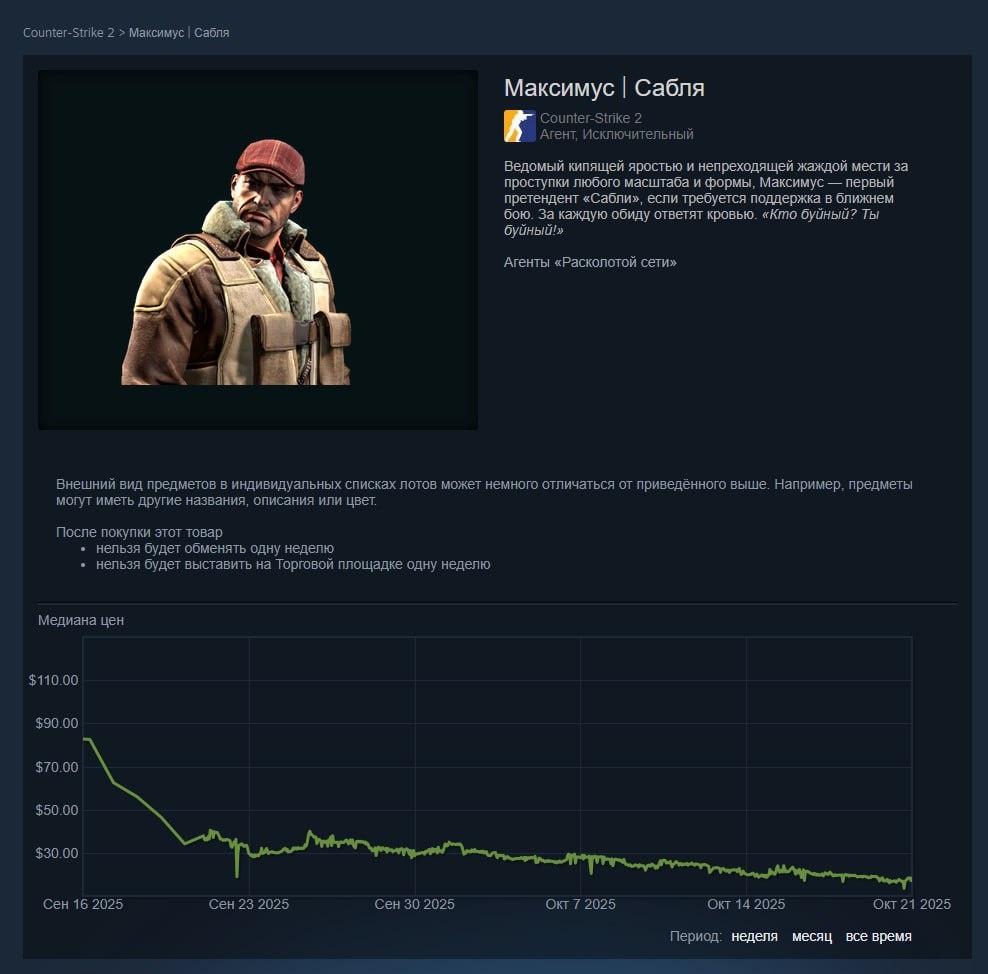 Привет, друзья! Сегодня мы поговорим о неожиданном падении цен на агентов в популярной игре CS2. Некоторые топовые персонажи потеряли до 80% своей стоимости. Например, Максимус (Сабля) подешевел с 6700 до 1350 рублей, Майкл Сайферс (ФБР) — с 6000 до 1800 рублей, а Осирис (Элитный отряд) — с 3700 до 1650 рублей. Это падение стоимости может быть связано с несколькими факторами. Во-первых, возможно, разработчики игры внесли изменения в баланс, которые сделали некоторых агентов менее востребованными. Во-вторых, на рынке могли появиться более сильные игроки, которые предложили альтернативные стратегии игры. В-третьих, изменение цен может быть связано с общими тенденциями на рынке виртуальных товаров. Независимо от причин, это падение стоимости может иметь серьёзные последствия для игроков. Некоторые из них могут потерять интерес к игре, если их любимые агенты стали менее ценными. Другие могут начать искать альтернативные способы заработка в игре, например, через торговлю на специализированн
