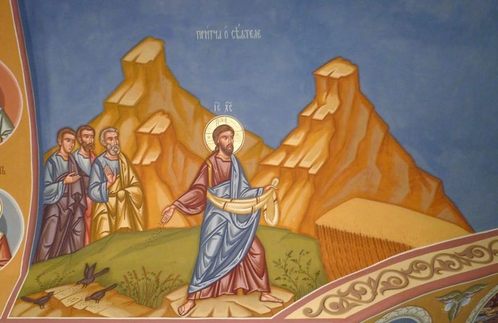 «Вышел сеятель сеять семя свое, и когда он сеял, иное упало при дороге и было потоптано, и птицы небесные поклевали его; а иное упало на камень и, взойдя, засохло, потому что не имело влаги; а иное упало между тернием, и выросло терние и заглушило его; а иное упало на добрую землю и, взойдя, принесло плод сторичный. Сказав сие, возгласил: кто имеет уши слышать, да слышит!»