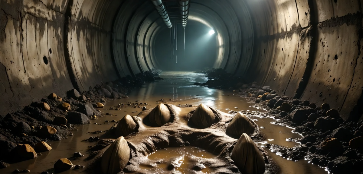Они замерли, прислушиваясь. Шёпот стих, сменившись тяжёлым, хриплым дыханием, доносящимся откуда-то сверху. Максим медленно поднял фонарь, направляя луч на потолок туннеля. И они увидели их. Длинные, глубокие царапины, идущие по бетону, словно кто-то невероятно сильный и с острыми когтями передвигался по перекрытиям, как по полу.