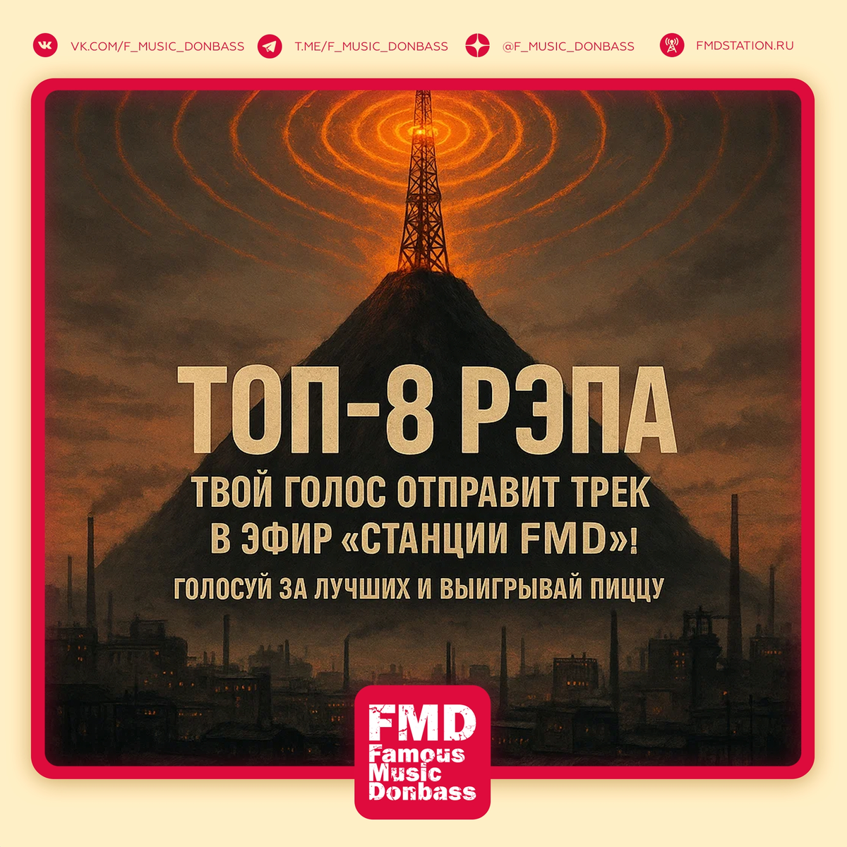 В этом месяце рэп-артисты Донбасса выпустили 37 синглов и 1 альбом. Отобрали традиционную восьмёрку самых интересных треков и приглашаем вас проголосовать за своих фаворитов. Важно: ваше голосование теперь напрямую влияет на эфир радио «Станция FMD»! Чем выше место, тем чаще трек будет звучать в эфире: Пятидневное голосование среди наших подписчиков за лучший трек проходит здесь: