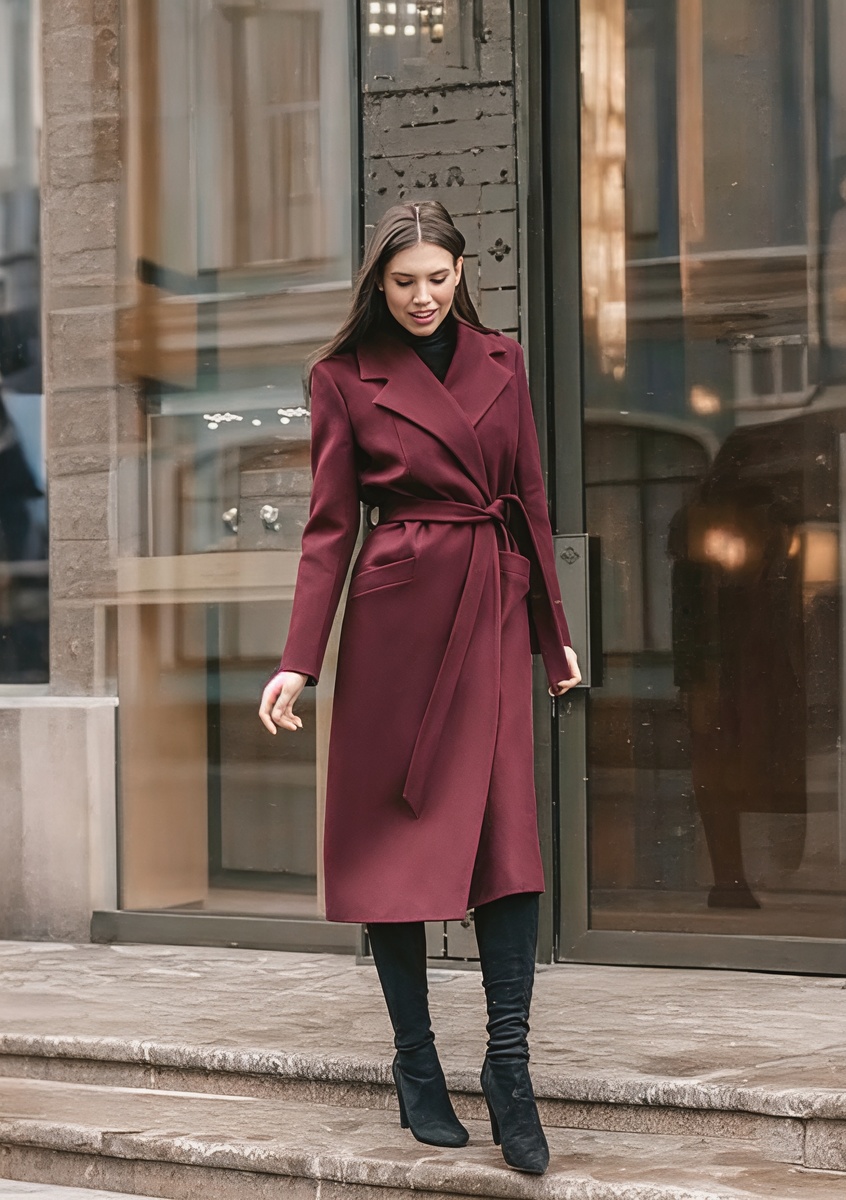 Про цвета отдельная тема. Этой зимой в почёте глубокие природные оттенки. Вишнёвый вырвался вперёд — он и благородный, и свежий одновременно. Тёмно-серый даёт ту самую сдержанную элегантность. А насыщенный коричневый создаёт ощущение чего-то основательного, надёжного. Классическое пальто удобно тем, что его можно надеть куда угодно: в офис с брюками, на прогулку с тёплым платьем, да хоть с джинсами на встречу с подругой.