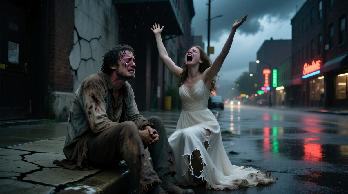 Ветер играл с его растрёпанными волосами, а глаза — тёмные, как утренний асфальт после дождя — смотрели на неё без злости. Только боль. Тихая, глубокая, привычная.