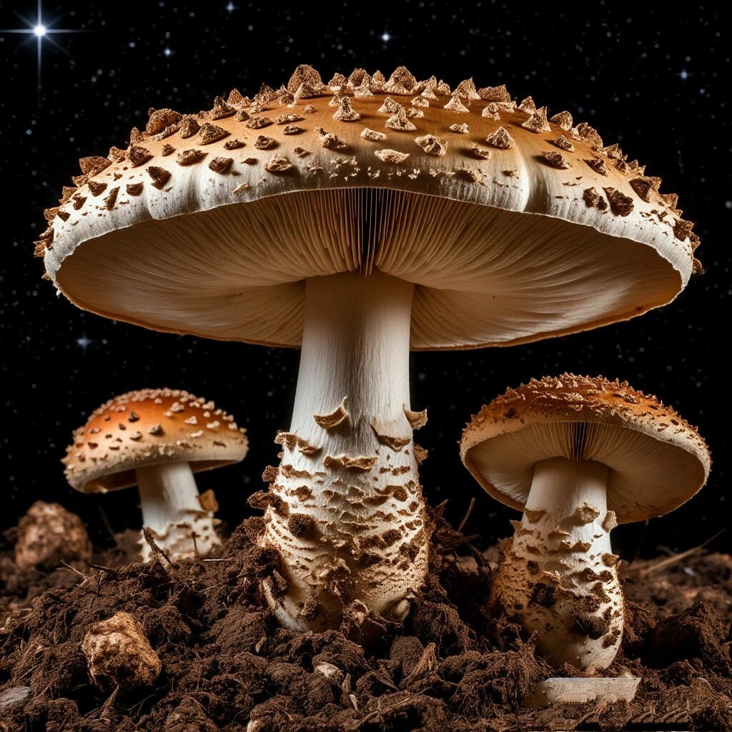Гриб. Полину всегда тянуло звёздное небо, она часами рассматривала созвездия и падающие звёзды. На день рождения ей подарили огромный телескоп — радости не было предела. Каждый раз, примчавшись со школы, она быстренько делала уроки и бежала к своему новому лучшему другу — телескопу. Друзья тщетно пытались выманить гулять: ей больше нравилось проводить время со звёздами. В тот день она, как и прежде, рассматривала в телескоп звёздные просторы, внезапно одна из звёзд отделилась и стала резко падать: её свет был настолько ярким и близким, что Поле показалось, что она упала совсем рядом. Наспех накинув куртку, девочка выскочила на улицу, в траве под окном лежали маленькие осколки, присмотревшись, можно было подумать, что это маленькие блестящие грибные споры. Поля тщательно их собрала и убрала дома в маленькую коробочку. День 1. Утром из коробочки послышалось шуршание. Осколки лежали в прежнем положении, но немного увеличились в размере. День 2. Шуршание усилилось. Осколки стали больш