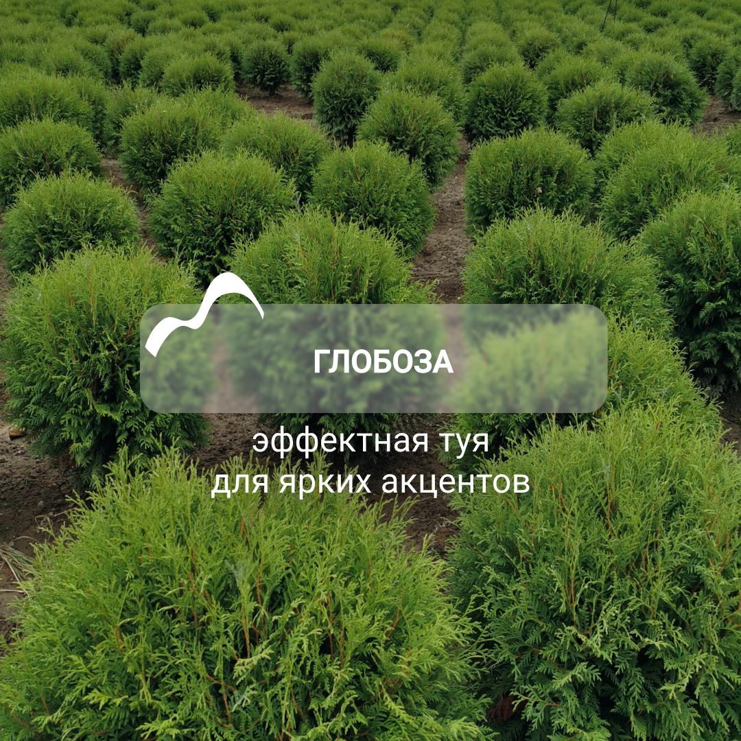 Если бы деревья снимались в кино, то Глобоза точно играла бы роль аристократки: компактная и всегда безупречная туя. 🔹 Отличительная черта сорта — компактная сферическая, с возрастом приплюснутая крона 🔹 Туя растёт медленно и достигает высоту до 1,2 м и диаметра около 1 м. Идеальный вариант для небольших участков, каменистых садов и композиций с другими хвойными 🔹 Хвоя весной — светло-зелёная, летом — зелёная, серо-зелёная зимой 🔹 Неприхотлива, выдерживает ветра и морозы, но нуждается в защите от снежных завалов. Спокойно растёт и на солнце, и в полутени. — В рокариях и альпийских горках; — В групповых посадках (отлично контрастирует с голубыми и золотистыми хвойными); — В кадках у входа (для создания аккуратного, ухоженного акцента). Чтобы Глобоза сохраняла идеальную форму и цвет, не забывайте про весеннюю подкормку и осеннюю влагозарядку! ✨ Туя отличается относительно компактными размерами, но впечатляющим визуальным эффектом. Именно поэтому Глобозу так любят дизайнеры и садовод