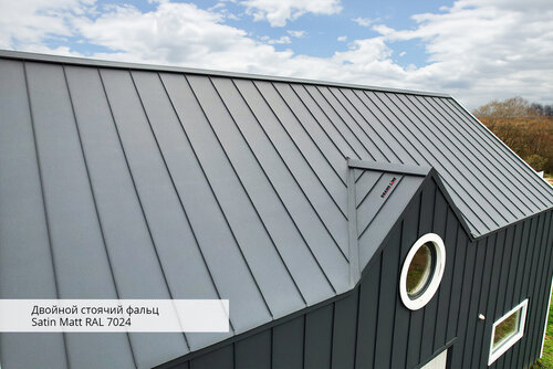Grand Line выпускает фальцевую кровлю как в классическом исполнении с двойным стоячим фальцем, так и в инновационной версии кликфальц — с замковым соединением, которое упрощает монтаж и обеспечивает герметичность конструкции.