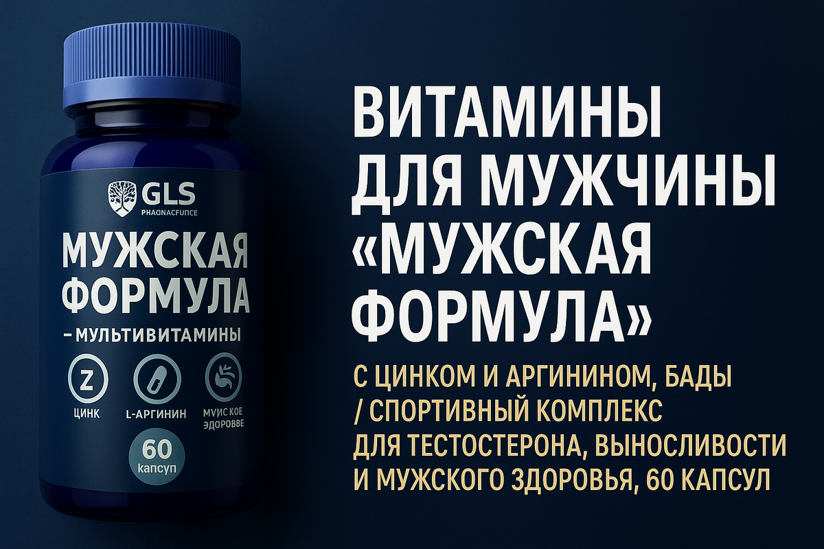 Современный ритм жизни требует от мужчины максимума. Работа, спорт, семья, постоянный стресс и недосып — всё это бьёт по здоровью, энергии и даже самооценке. Поэтому не удивительно, что всё больше мужчин выбирают комплекс витаминов “Мужская формула” от GLS Pharmaceuticals — удобный способ поддержать силу, выносливость и гормональный баланс без уколов и дорогих добавок. Формула разработана специально для мужского организма и содержит 13 витаминов и 12 минералов, включая: ✅ Повышает энергичность и выносливость — уже через 1–2 недели приёма. ✅ Поддерживает естественный уровень тестостерона. ✅ Улучшает работу сердца, сосудов и нервной системы. ✅ Помогает восстанавливаться после стресса, спорта и нагрузок. ✅ Повышает либидо и общее самочувствие. По инструкции — по 1 капсуле 2 раза в день во время еды. Курс рассчитан на 1 месяц, но производитель допускает повтор приёма после короткого перерыва. Компания GLS — известный производитель спортивных и оздоровительных добавок с фокусом на ка