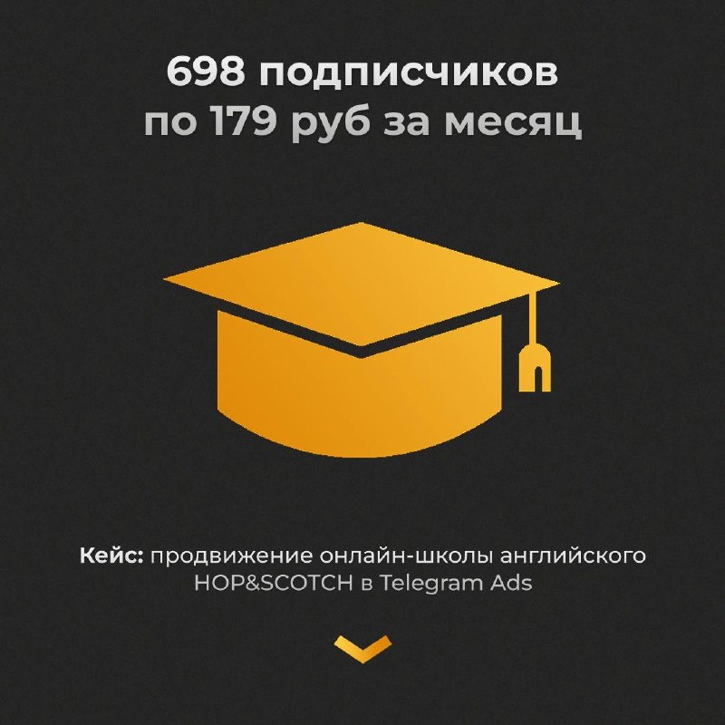 Кейс: продвижение онлайн-школы английского HOP&SCOTCH в Telegram Ads — 698 подписчиков по 179₽ за месяц