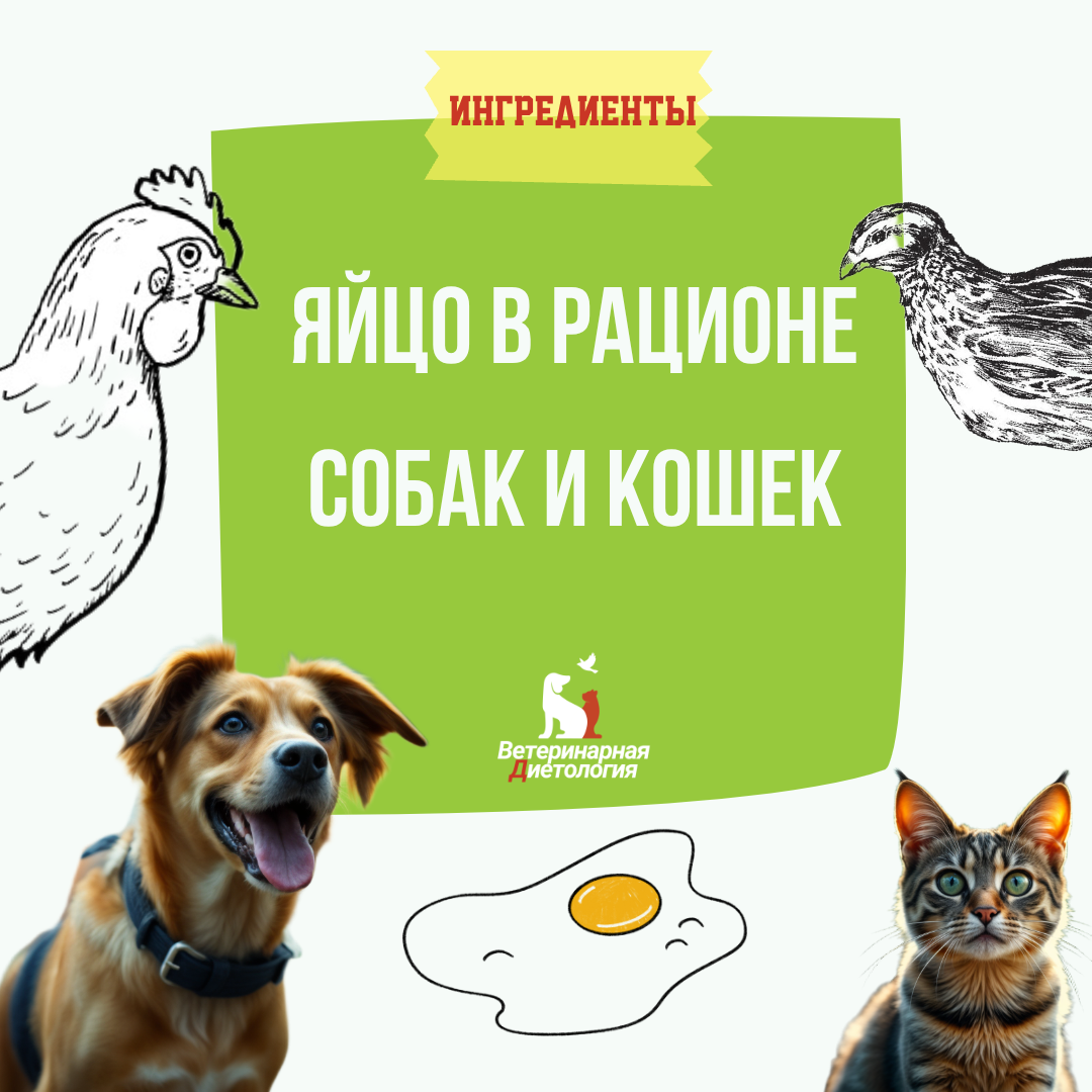 Яйца — один из самых питательных продуктов на планете. Они содержат почти все необходимые человеку и домашним питомцам нутриенты: белок, эталонный по усвояемости, жирные кислоты, витамины и минералы. Яйца могут быть полезным дополнением к рациону, но имеют и свои риски, которые важно учитывать. При умеренном потреблении яйца это прекрасная добавка к рациону. Главное правило — умеренность. Яйцо должно быть лакомством, а не основой рациона. Исключение составляют некоторые виды ветеринарных диет где используется белок яйца как основа рациона (диета при патологии почек). СОСТАВ ЯЙЦА Скорлупа: Состоит в основном из карбоната кальция (CaCO₃), ее можно использовать в качестве источника кальция в рационе. Белок яйца: Все яйца являются высококачественным источником полноценного белка (овальбумин, кональбумин, лизоцим и др.). Белки в яйцах разных птиц могут отличаться, но разница в его количестве на 100 г не столь значительна.У некоторых питомцев с аллергией на куриный белок может не быть реак