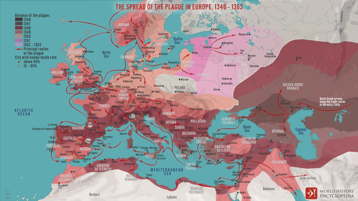 Рекомендую телеграм канал Истории Одна из самых поразительных загадок для меня. В 14 веке Европу поразила эпидемия чумы. Пришла она, судя по карте, из Золотой орды. Но в Россию чума пришла из Европы! Посмотрите на карту. Ну казалось бы, вот Золотая орда, вот Русь - рукой достать. Более того, Русь вассал орды - есть прямые контакты. На Русь баскаки за данью приезжают, а князья едут на поклон ханам. А холера чума их не берет! О чем это говорит? О том, что интенсивность контактов очень низкая. Связей было очень мало. Новгород интенсивнее взаимодействовал с Прибалтикой, чем Русь с ордой. И да: чума передавалась с крысами, а крысы - спутники торговли - кораблей и караванов - мешков с грузами. А Русь с Ордой не обменивались грузами. Вот и разгадка И очень важный вывод: Орда ведь была не просто завоевателем, а коммерческой империей - контролировала транзит между Китаем, Средней Азией, Кавказом и Европой, держала на себе кусок Великого шёлкового пути. Торговля - её кровь. И вот на этом фоне