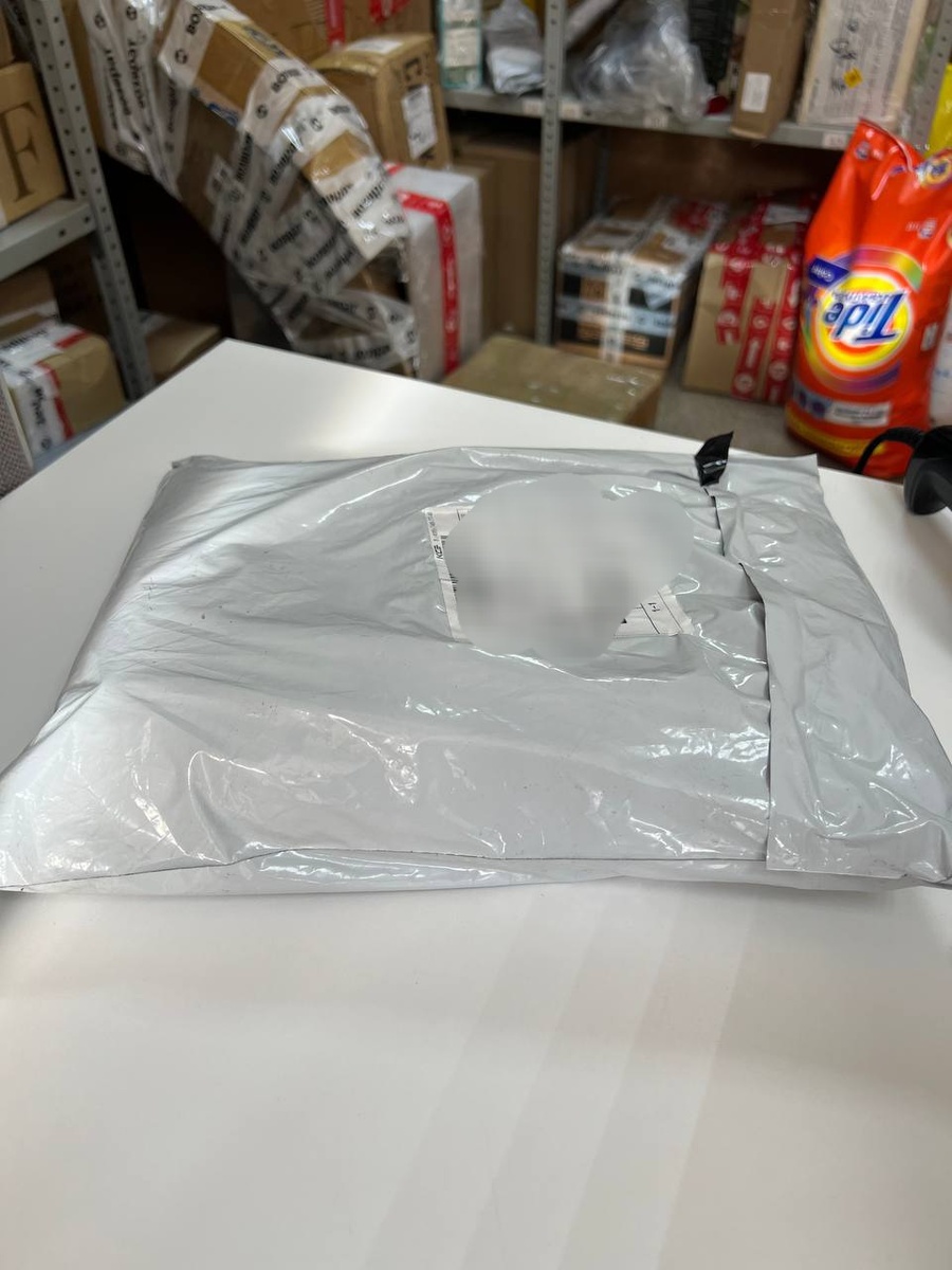 А вот - другая сторона этой посылки. Видите, 2 наклейки с двумя разными номерами. Одна - переклеившаяся с нашей посылки. В итоге эта посылка поехала нашей подписчице, ну а дальше историю посылки вы уже знаете.