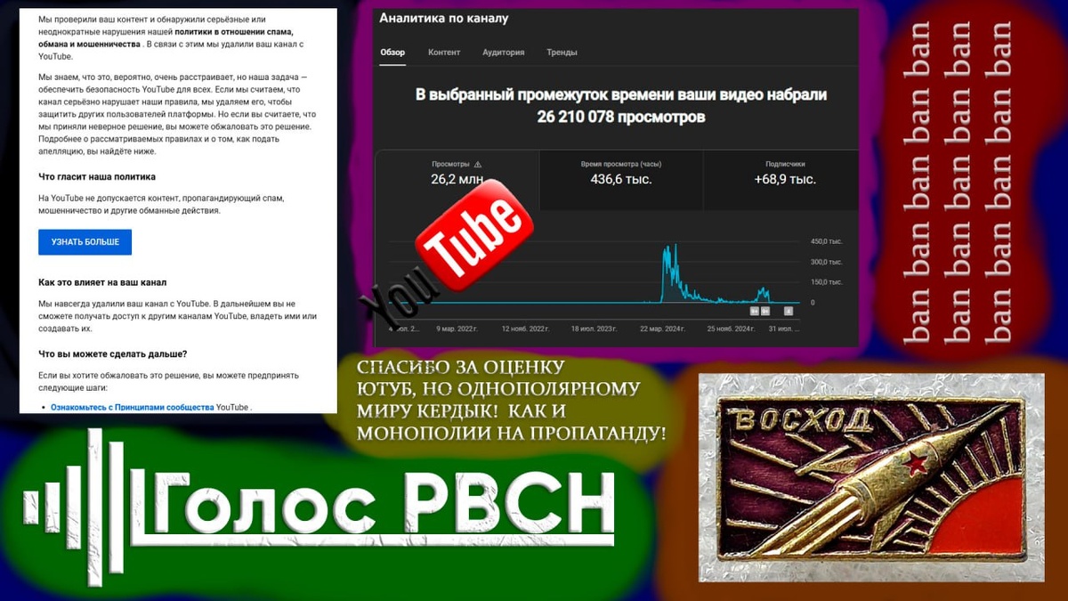 Не так давно «Ютуб» посчитал канал «Голос РВСН» угрозой для США и устранил его путем удаления всех каналов на аккаунте