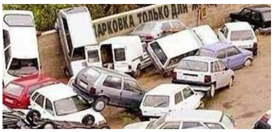 Такая манера парковки заставила пешеходов или протискиваться через узкую щель между бампером и стеной, либо огибать машины по краешку оживлённой проезжей части.