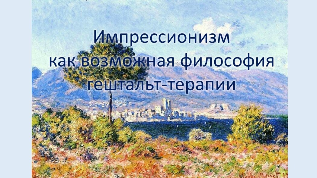 Импрессионизм не указывается как прямое философское основание гештальт-терапии, но можно легко обосновать их родство. В частности, через феноменологию. Как философское направление феноменология развивалась в поле уже "нового" человека - человека окончания XIX века. Субъективность была доказана, получила свои права и признана как неизбежность и даже - природа. Импрессионизм - воплощение субъективности, художественный ей гимн, иллюстрация феноменологических идей.