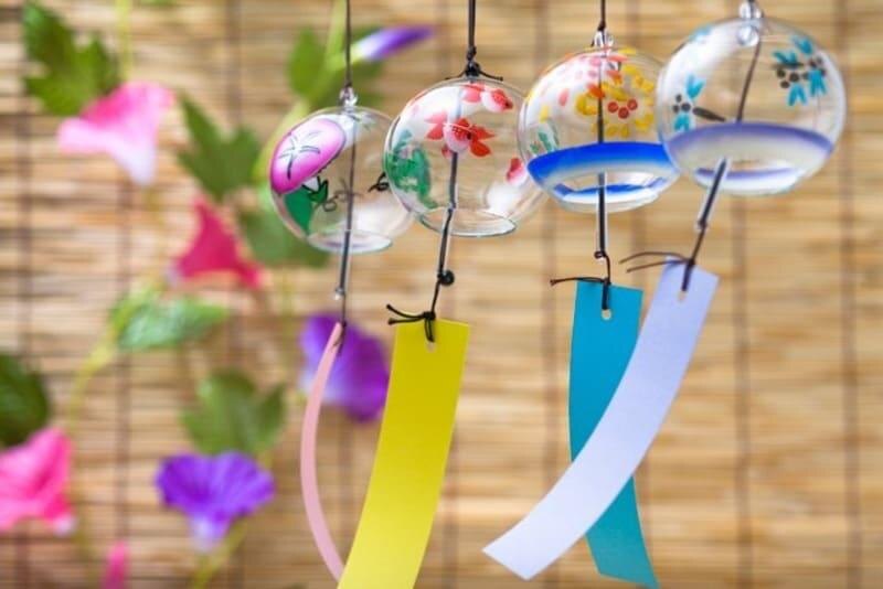 風鈴 (ふうりん)【fūrin】 — колокольчики ветра Летом в Японии висят 風鈴 (ふうりん)【fūrin】 — стеклянные или металлические колокольчики. Когда ветер качает их, раздаётся нежный звон, создающий ощущение прохлады. Бумажная полоска 短冊 (たんざく)【tanzaku】 помогает уловить ветер. Звук風鈴 (ふうりん)【fūrin】 для японцев — символ лета. #Япония #fuurin #традиции #лето
