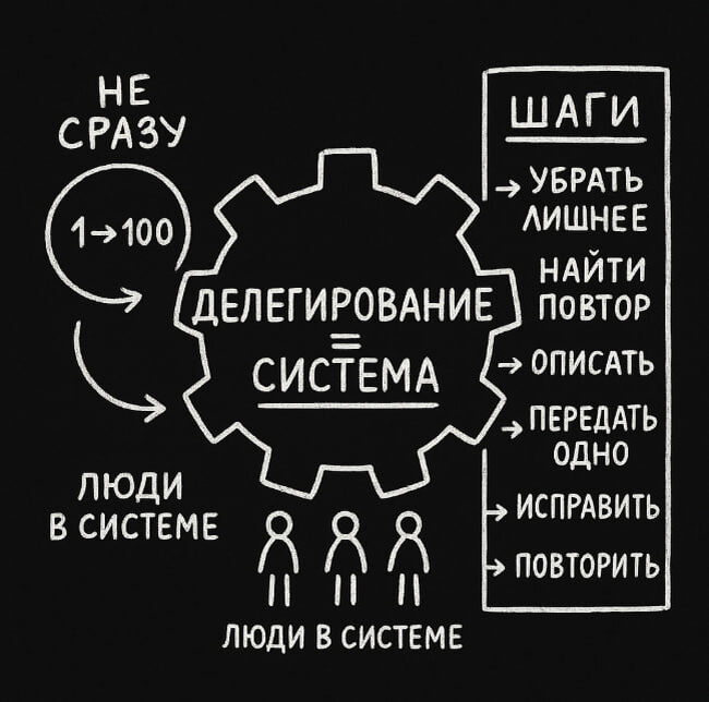 Ты не управляешь людьми - ты управляешь системой, где работают люди Я несколько раз проходил один и тот же цикл. Бизнес на двоих, потом на семерых, потом на двадцать, потом на пятьдесят. И каждый раз я думал, что теперь - то я точно умею делегировать. Каждый раз ошибался. Когда у тебя два человека - ты просто делаешь всё сам. Когда семь - начинаешь передавать задачи. Когда двадцать - уже горишь, потому что всё возвращается к тебе. Когда пятьдесят - кажется, что есть система, но она держится не на процессах, а на тебе. Я долго путал делегирование с доверием. Думал: «Надо просто отпустить». А оказалось - надо построить систему, в которой результат неизбежен. И вот что важно: - не получится ни с первого раза, - ни со второго, - ни с десятого. В лучшем случае - с сотого. И это нормально. Процессы - не статичны. Они не рождаются готовыми, они формируются. И меняются, когда меняется бизнес, люди, задачи. Для себя взял главное - объяснить это команде. Сказать честно: У меня пока не