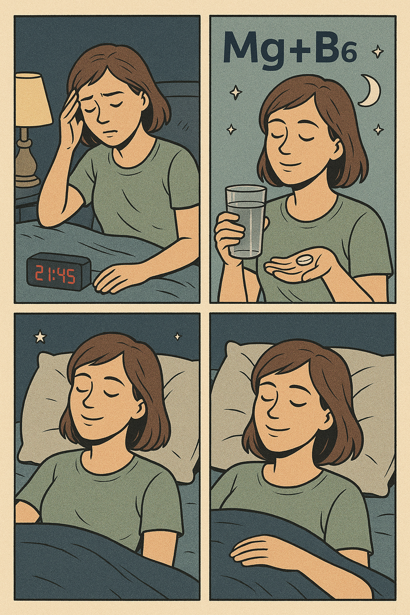 Вместе они работают как пара: Именно поэтому сочетание магний + B6 часто называют «формулой спокойствия». Если коротко - тело само подсказывает.