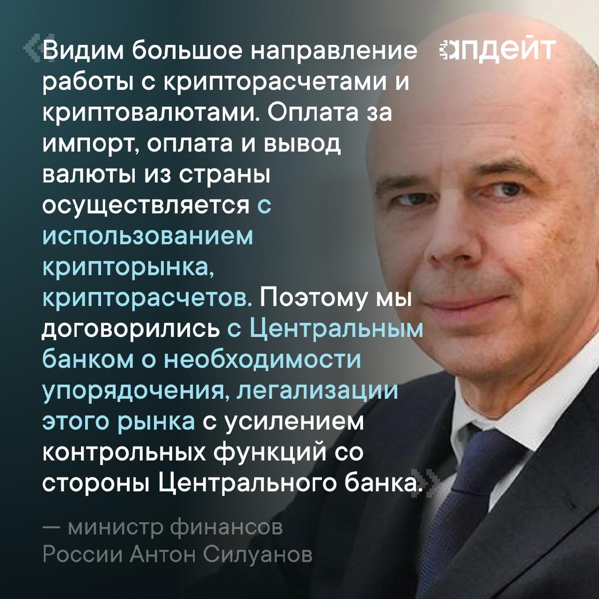 🚗Минфин и ЦБ договорились легализовать расчёты в криптовалюте во внешней торговле, — заявил министр финансов Антон Силуанов.
